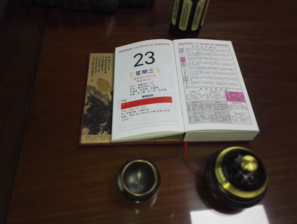 《东霖日历》,一种可以当做台历使用的日历,特殊的精装烫金打开式设计,可以放在办公桌上,方便随时打开翻阅,不仅高端大气上档次,而且为你每天的生活和工作提供趋吉避凶的指导,让你可以时刻把握天时地利与人和的脉搏,使你在如此变化莫测、节奏快速的现代生活中从容的面对一切挑战,运筹帷幄、决胜千里!