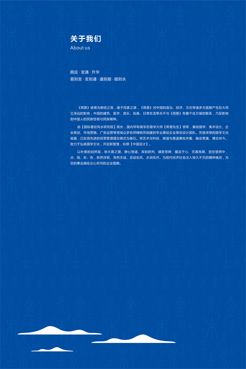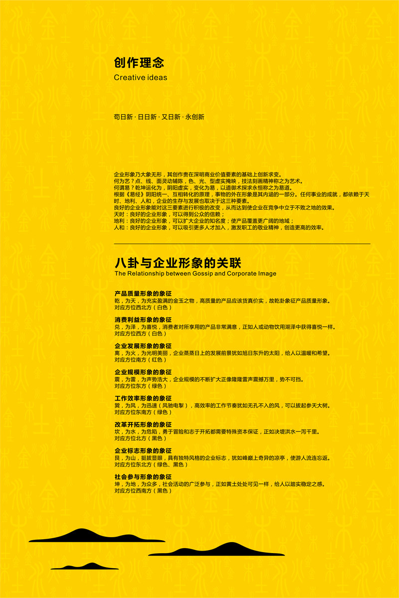 根据《易经》阴阳统一、互相转化的原理,事物的外在形象是其内涵的一部分。任何事业的成就,都依赖于天时、地利、人和,企业的生存与发展也取决于这三种要素,所以,根据易经风水的理念和原则设计出来的企业VI系统,会无形中的为企业注入天地的灵气和正能量,让企业首先在外在形象方面符合天道、地道和人道,从而把天地的灵气和正能量由外而内的贯通到企业的各个角落,对企业的经营和发展将会铺平一条金光大道!