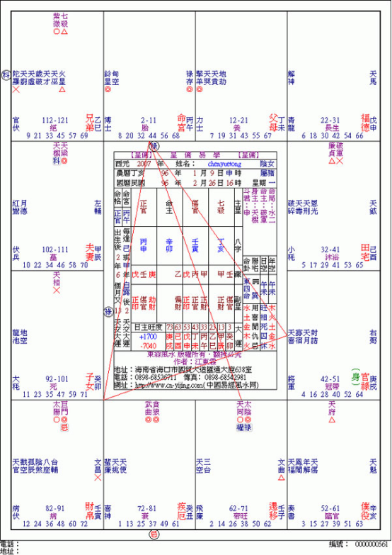 外常晚归。在外有贵人扶持。但不宜与人竞争。 远涉他方,白手创业成富。交友广阔,指点头之交而已,对于择友也是相当谨慎的。 能得贵人相扶,处事积极,生活充满生气,但个性略带急燥。 事事操心费神。 能够得到一个热情的夫婿,而能享受快乐。劳心劳力,费精费神。心神不定,失眠,举棋不定,做事不能一气呵成,半途每思改变,或取消重做。虽操心,但能享受。双亲个性顽固,行事谨慎,说话好像法官问案。